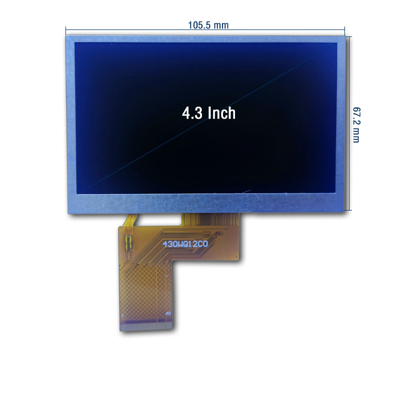 این LCD TFT دارای یک 4.3 (16: 9) اینچ قطر اندازه گیری منطقه نمایش فعال با WQVGA