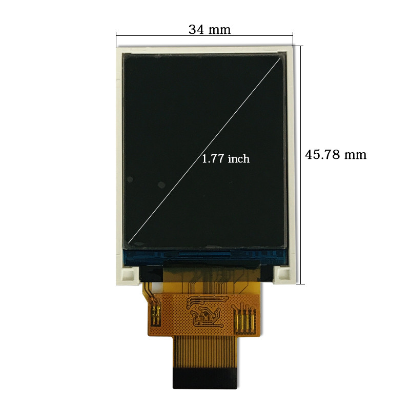 * این LCD TFT دارای یک 1.8 اینچ (اسکرین عمودی) منطقه نمایش فعال به صورت قطری اندازه گیری شده است با وضوح 128*160