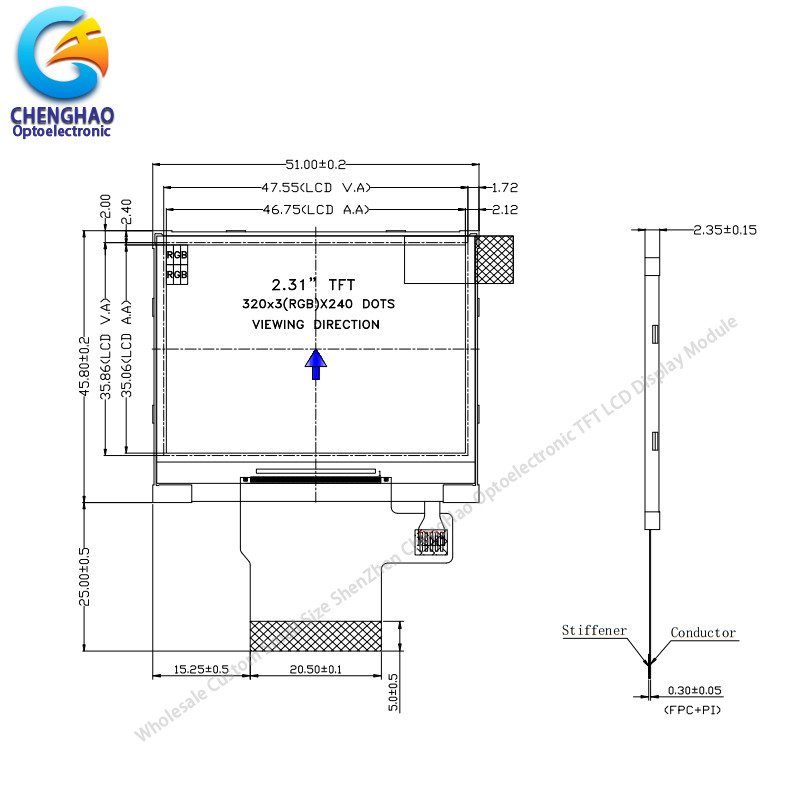 * CH231QV07A یک صفحه نمایش کریستال مایع متریکس فعال رنگی (LCD) است.
