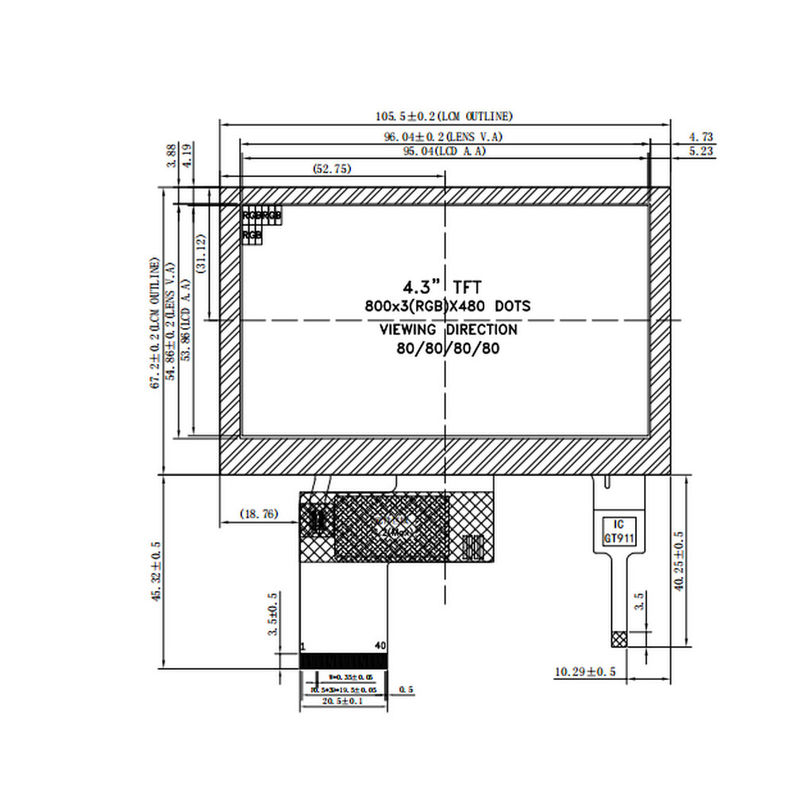 | جهت مشاهده: | 80/80/80/80 | شماره پین Fpc: | 40 پین |