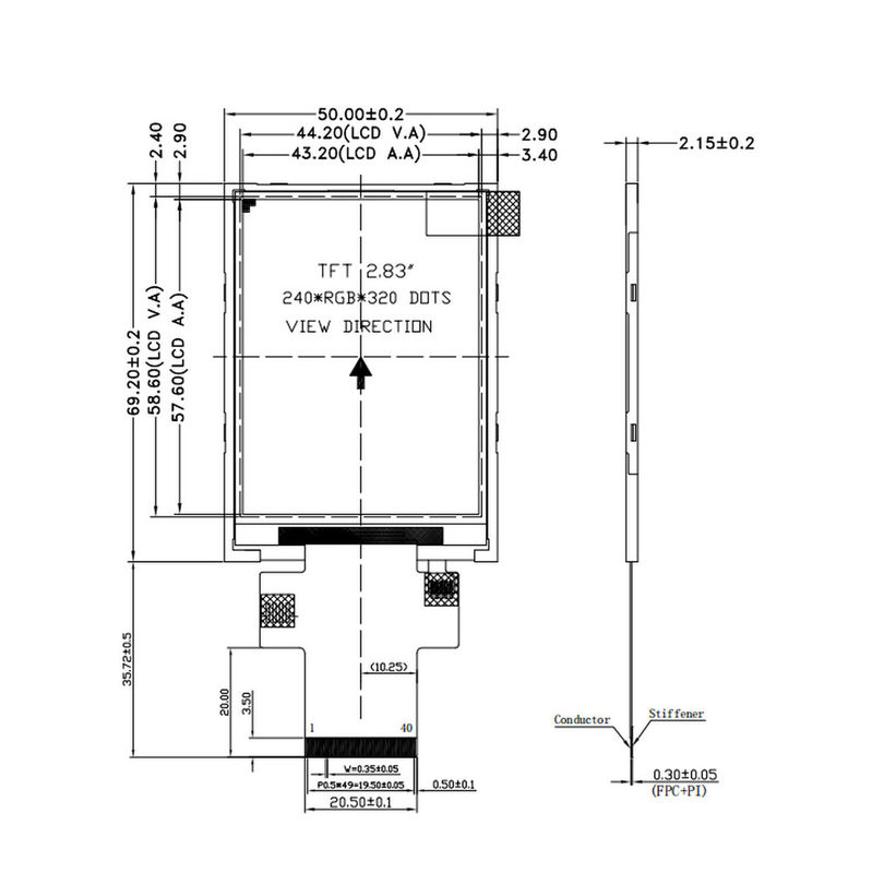 40 پین 2.8 اینچ صفحه نمایش LCD کوچک IPS انتقال QVGA با ST7789 IC